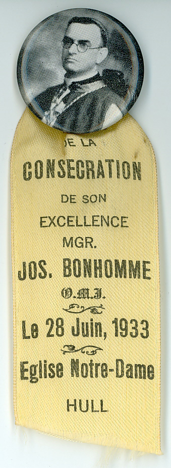 1933 - 28 June - Badge and ribbon for Consecration of Bishop Bonhomme