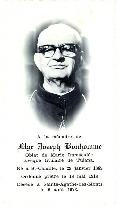 1973 - Bishop Joseph Cyprien Bonhomme - Obverse Memorial Card
